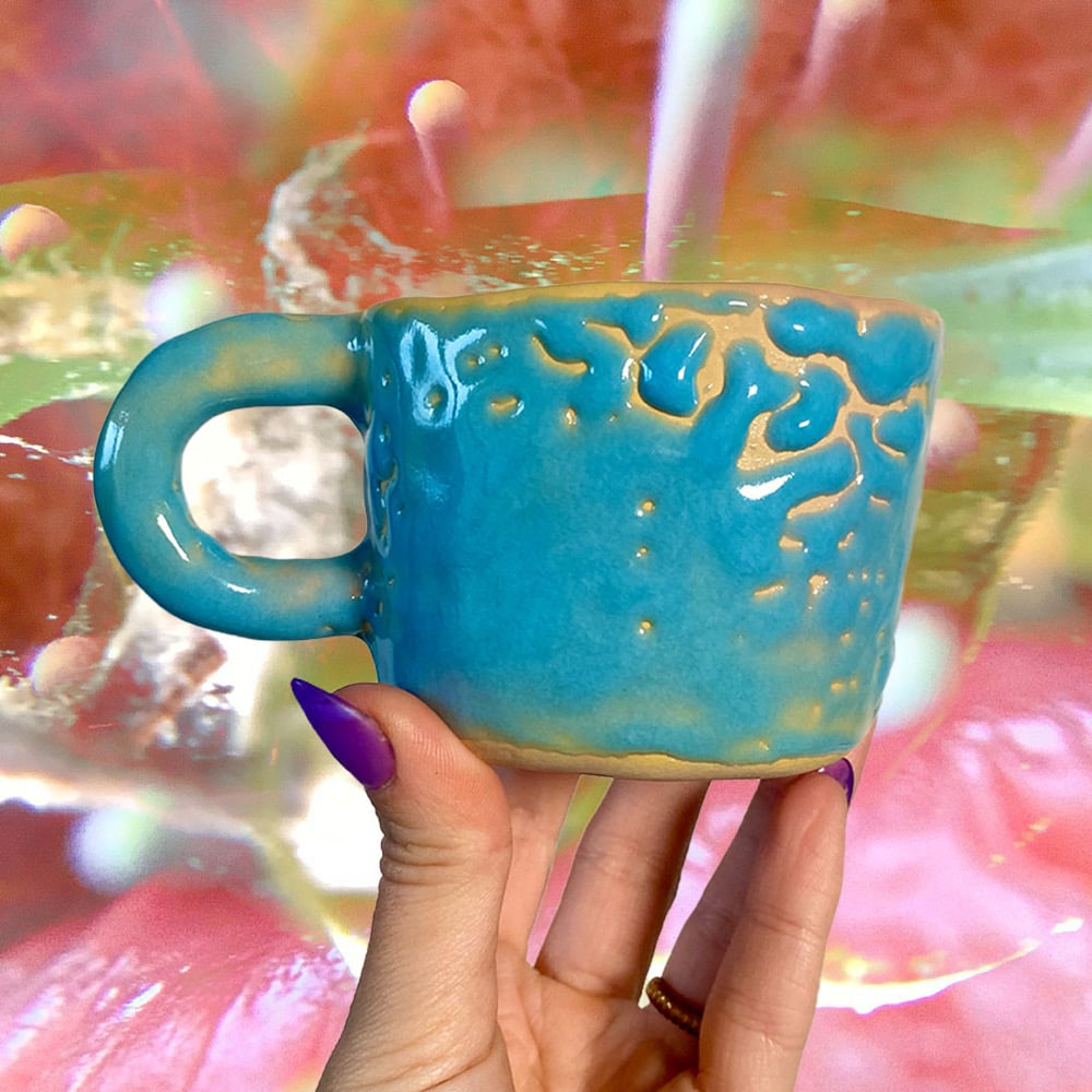 Designed for lovers of kitsch ascetics, science fiction and unique art, this mug blends camp futuristic aesthetics with artisanal craftsmanship.