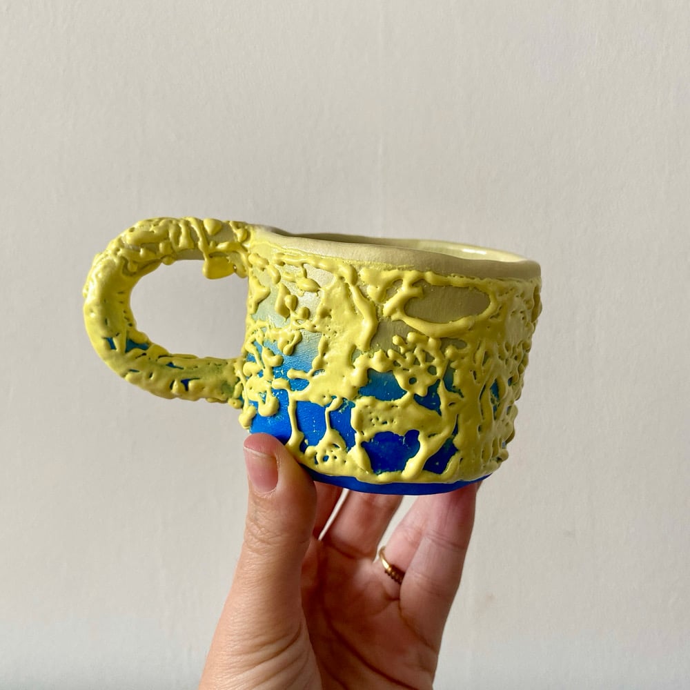 Designed for lovers of kitsch ascetics, science fiction and unique art, this mug blends camp futuristic aesthetics with artisanal craftsmanship.