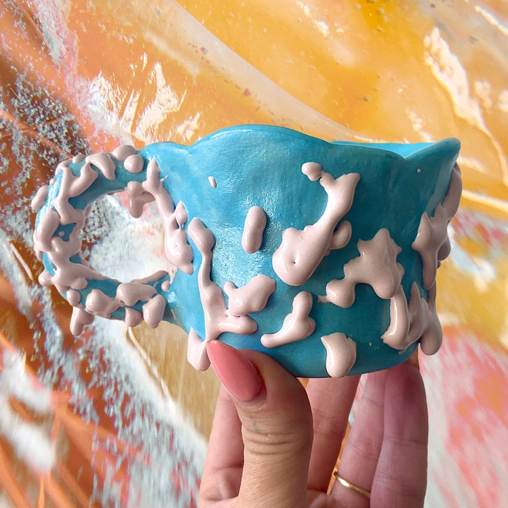 Designed for lovers of kitsch ascetics, science fiction and unique art, this mug blends camp futuristic aesthetics with artisanal craftsmanship.